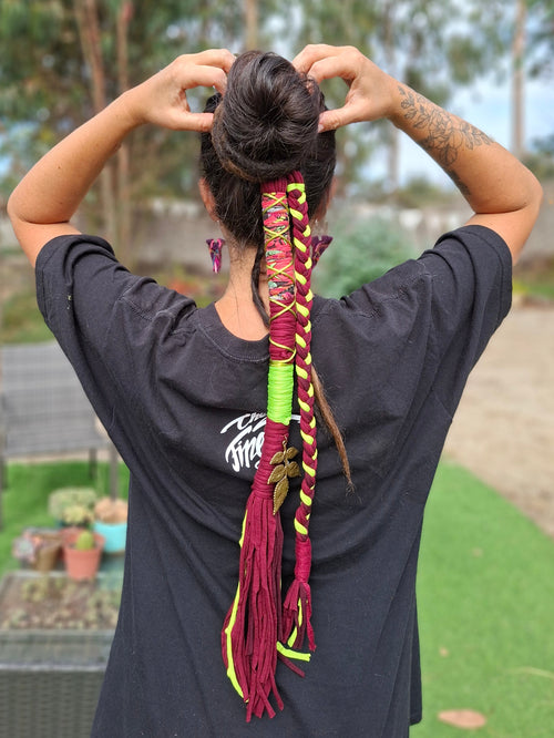 Accesorio para el pelo hecho con trapillo reciclado y telas reutilizadas.